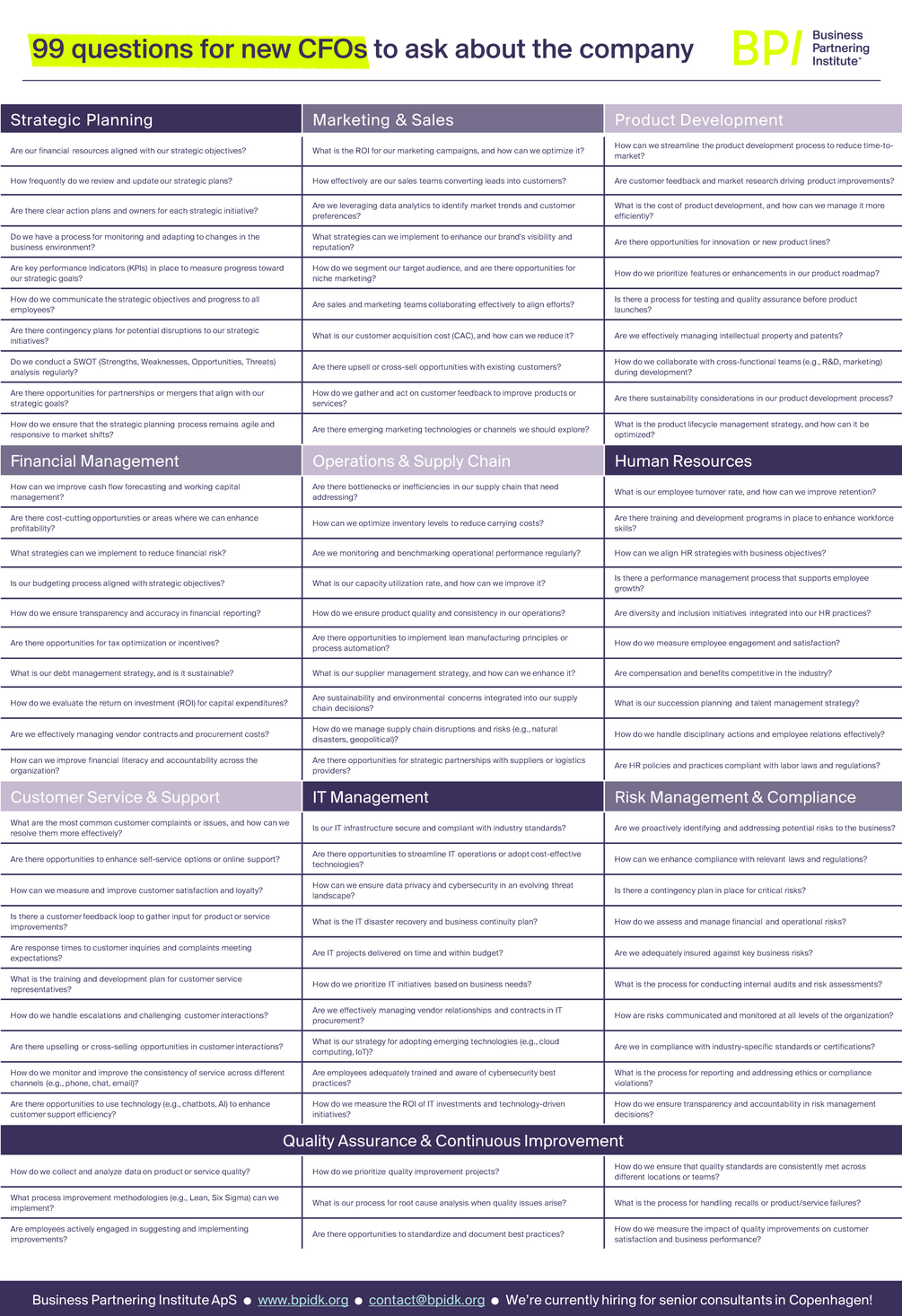 We have drafted a list of 99 questions to ask to the ten most central business processes. Grab it and be better prepared next time you start a new role...